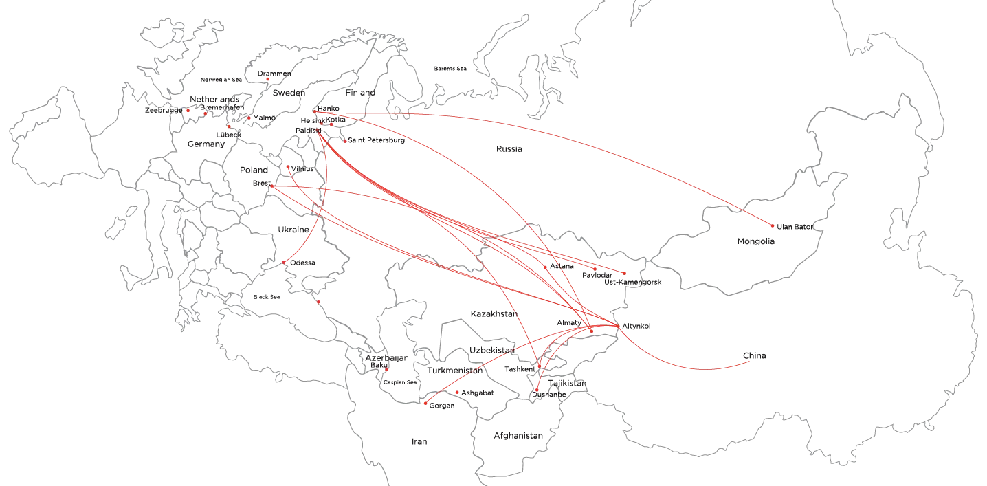 Ajoneuvologistiikan verkosto Euroopassa ja Keski-Aasiassa